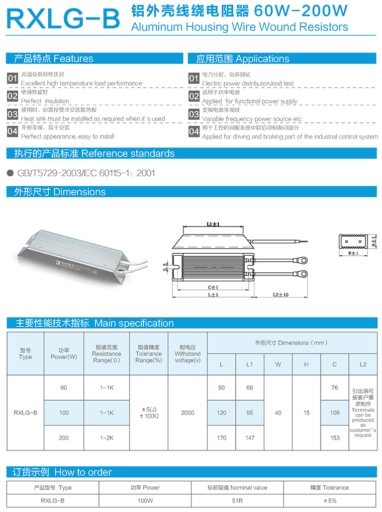 RXLG-B型铝外壳线绕电阻器